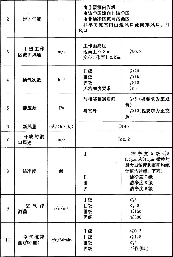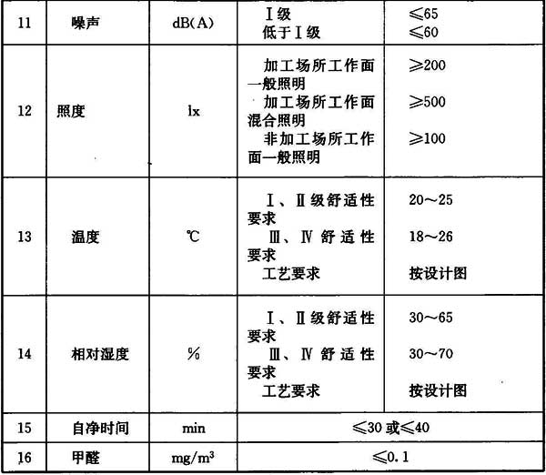 10.2.4 潔凈用房在完成本規范第10.2.2條的安裝確認和第10.2.3條的運行確認后,在工程驗收之前,應通過對靜態性能全面測定的確認,驗證潔凈用房及其凈化空調系統的綜合性能應符合表10.2.4規定。測定方法應按現行國家標準《潔凈室施工及驗收規范》GB 50591的有關規定執行。