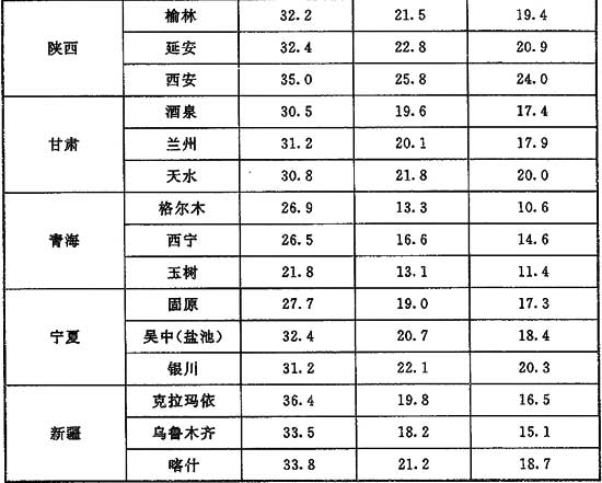 5  中國河流年均水溫的地區分布形勢大體與氣溫一致。河流年均水溫略高于當地年均氣溫,差值一般為1℃~2℃。但當高山冰雪融水在河流補給中占主要地位的地區則相反,年均水溫低于氣溫1℃~2℃。中國河流水溫的年內變化過程,大部分地區均為在春、夏增溫階段,水溫低于當地氣溫;秋、冬降溫階段,水溫高于當地氣溫。采用蒸發冷卻空氣處理方式,冷卻水采用直流式地表水,可降低被處理空氣溫度,此時地表水即為天然冷源。